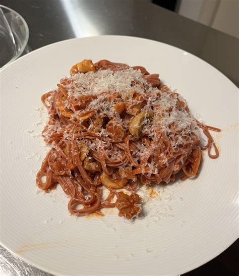 Tajarin al Barolo con Salsiccia e Champignon
