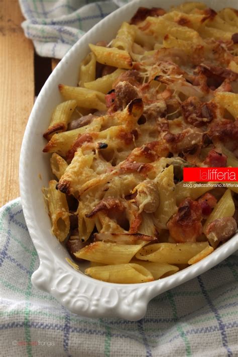 La pasta al forno con patate provola e pancetta, un primo piatto economico facile e gustoso.