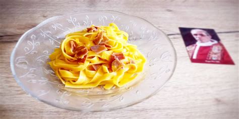 Il Papa in questione è infatti Pio XII, al secolo Eugenio Pacelli. Diventato Papa nel 1939, negli anni '50 si trovò di fronte a una Roma dove impazzavano gli spaghetti alla carbonara. Al punto che alcuni sostengono che il celebre piatto nacque proprio ispirandosi alle uova e al bacon dei soldati americani. Fatto sta che Pio XII chiese al cuoco del Vaticano una versione più delicata e raffinata degli spaghetti alla carbonara.