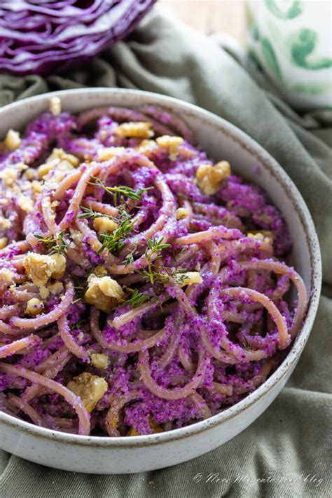 Le penne con cavolo cappuccio viola e noci sono un'opzione semplice, veloce ed economica per gustare questo ortaggio ricco di vitamina A e ferro. Il cavolo viola dona al piatto un colore viola caldo e acceso dalle tonalità brillanti.