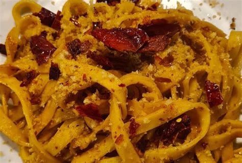 Questa ricetta è molto appetitosa generalmente realizzata con formati di pasta lunga, che viene preparata sciogliendo dei filetti di acciughe, aglio e peperoncino nell’olio. A questi ingredienti viene aggiunta della mollica di pane, tostata in padella con aglio e olio fino a diventare croccante: il tutto verrà amalgamato agli spaghetti e servito caldissimo.