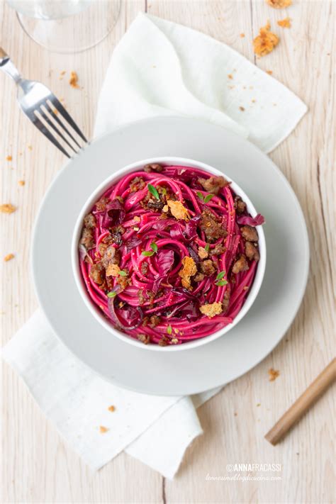 Tagliatelle alla Barbabietola con Salsiccia di Cinghiale e Zucchine