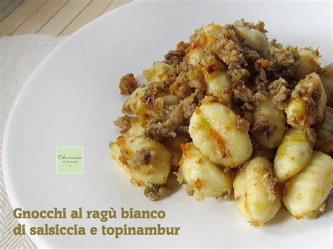 Gli gnocchi al ragù bianco di salsiccia e topinambur sono un'alternativa gustosa e originale ai classici condimenti. La presenza della salsiccia rende saporiti questi gnocchi al ragu’ bianco, perciò è sconsigliabile l’aggiunta di sale. Utilizzare le spezie e le erbe aromatiche per arricchire il sapore.