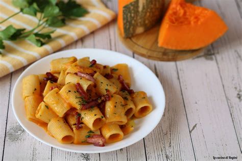 La pasta alla crema di zucca e pancetta è un primo piatto dal sapore molto particolare dove la delicatezza della purea di zucca si abbina al sapore più forte della pancetta.