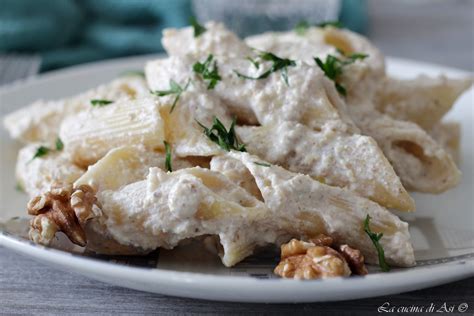 - Pasta ricotta e noci: La pasta ricotta e noci è un primo piatto facile, gustoso e saporito, perfetto per qualsiasi pranzo di famiglia o cena conviviale con gli amici, preparato con pasta corta lessata al dente e mantecata con una crema di ricotta, cipolla soffritta dolcemente, parmigiano grattugiato e gherigli di noce.