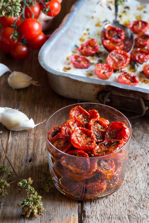 Per prepararli ti basterà tagliare i pomodorini, ricoprirli di zucchero e infornarli per due ore. Per prima cosa prepara i tuoi pomodorini confit: lavali e asciugali bene, tagliali a metà e spremili per eliminare l’acqua e i semini. Disponili uno di fianco all’altro su di una teglia foderata con carta da forno con la parte tagliata verso l’alto. Cospargi ora su ogni pomodorino, un pizzico di sale, di zucchero e l’origano secco.