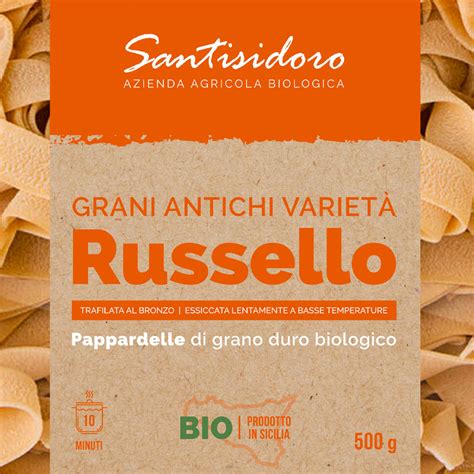 Il Russello, tipico dell’area ragusana, presenta grani rossastri (da cui il nome) e una spiga più alta rispetto a quella dei grani moderni che arriva anche a due metri di altezza. La particolarità del Russello e degli altri grani più antichi sta nella sua estrema digeribilità, nel suo potere nutritivo e nella ricchezza in proteine. La farina che si ricava da questo grano è meno raffinata e presenta un indice glicemico minore.