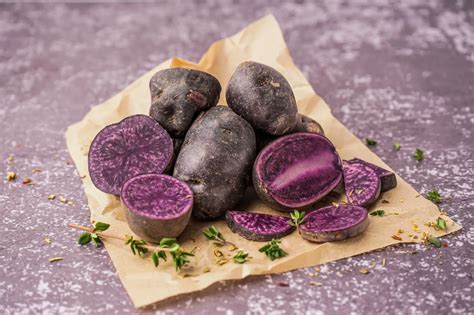 Esistono diverse varietà di patate viola, ognuna con caratteristiche uniche. Tra le più conosciute troviamo la Vitelotte, con la sua buccia e polpa di un intenso colore viola scuro. Altre varietà includono la Purple Majesty, la Congo, la Blue Congo e la Purple Peruvian.