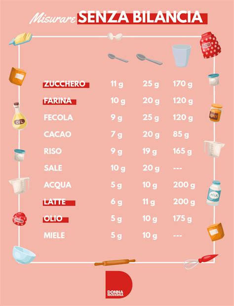 Le tecniche descritte in questa guida possono essere adattate per misurare anche altri ingredienti senza bilancia, come farina, zucchero, sale e liquidi. Tuttavia, è importante ricordare che la densità di ogni ingrediente è diversa, quindi è necessario utilizzare tabelle di conversione specifiche per ogni ingrediente. Esistono numerose risorse online che forniscono tabelle di conversione per una vasta gamma di ingredienti.