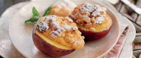 Esistono molte versioni delle pesche al forno, tra cui quella piemontese a cui ci siamo ispirati. Servendo questi deliziosi scrigni di frutta ripiena, scoprirete come la dolcezza delle pesche a polpa gialla si fonde con il cioccolato fondente e il gusto inconfondibile degli amaretti.