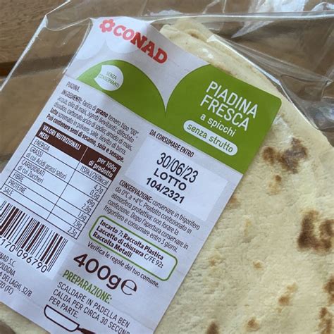 Le piadine che troviamo al supermercato possono avere oppure no il marchio Igp, ma questo non influenza più di tanto la scelta degli ingredienti che sono piuttosto semplici: farina (di solito bianca, ma si trovano anche piadine preparate con farina integrale), acqua, sale e un grasso che può essere olio (d’oliva o di girasole) oppure strutto; possono essere presenti agenti lievitanti e di solito non sono previsti aromi, né conservanti. Cento grammi di prodotto forniscono fra 290 e 390 kcal, che corrispondono a 350-450 kcal per una piadina, con un divario non trascurabile.