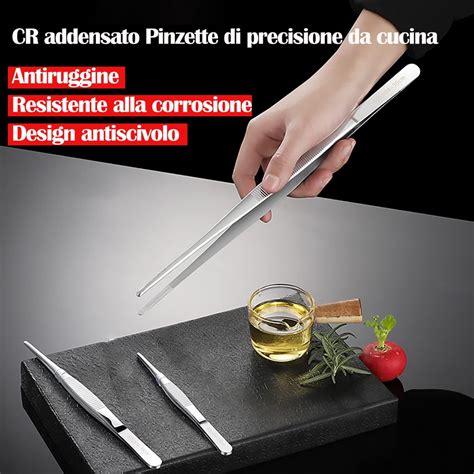 - Pinze da cucina per impiattare: Permettono di afferrare il cibo e trasferirlo nel piatto con delicatezza e precisione.