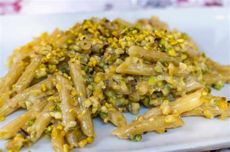 - Pasta al pistacchio: Un primo piatto perfetto sia per la cena di tutti i giorni, sia tra amici con salsa di cipolla, speck, panna fresca e granella di pistacchio.