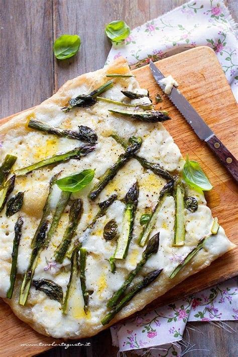 - Pizza con asparagi freschi, crescenza, mozzarella e prosciutto cotto: Una ricetta semplice e golosa perfetta per la primavera.