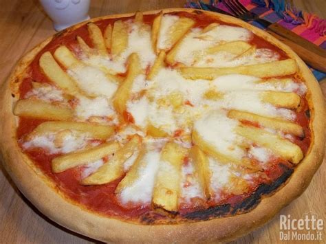 La base di questa pizza è solitamente una classica margherita, con salsa di pomodoro e mozzarella, ma ciò che la rende speciale è l’aggiunta di croccanti patatine fritte, che la trasformano in un piatto irresistibile.