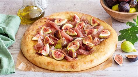 Una ricetta semplice e genuina che si prepara in modo veloce e con pochi ingredienti: una base di pizza bianca e mozzarella filante, condita poi, una volta fuori dal forno, con fettine di prosciutto crudo e fichi freschi di stagione. Per renderla ancora più gustosa è possibile usare la provola in alternativa alla mozzarella e cospargere con le noci tritate, mandorle o un cucchiaio di miele la superficie fumosa della pizza.