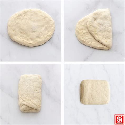 Rovescia l’impasto sulla spianatora, allargalo leggermente con i polpastrelli delle dita leggermente bagnate e forma un piccolo rettangolo (se le dimensioni sono contenute riuscirai a lavorarlo meglio). Con l’aiuto di una spatola, piega il rettangolo in 3 parti (piega a portafoglio) portando prima un lato verso il centro e poi l’altro. Infine, piegalo a metà e riponi nella ciotola e copri.