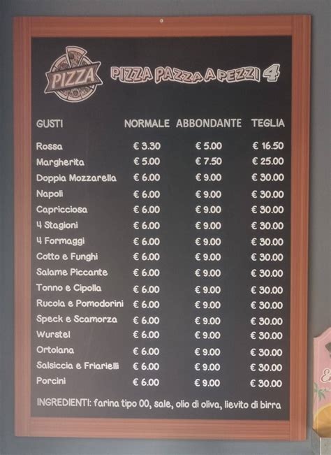 | Pizza al taglio | Sempre disponibile | Ideale per uno spuntino veloce |
