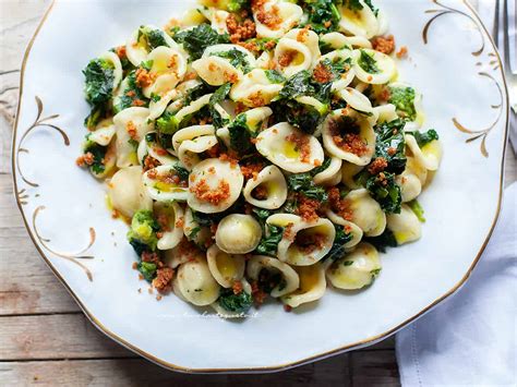 Questo piatto si differenzia dalle famose orecchiette e cime di rapa in quanto le cime di rapa non sono lesse ma stufate e sminuzzate. Guarnire con qualche scaglia di ricotta salata e qualche pinolo.