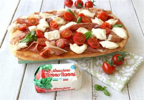 La pizza con stracchino pomodori e speck risulta molto buona e sfiziosa, e perfetta per essere servita calda in inverno o anche tiepida nella stagione estiva, magari tagliata in tante golose striscioline filanti.