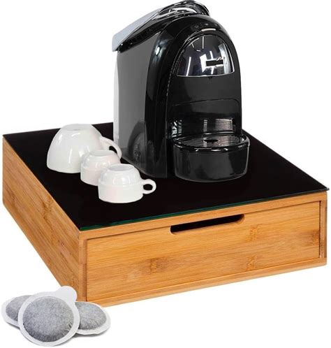 Avilia Porta Cialde in Bambù con Cassetto e Ripiano in Vetro
