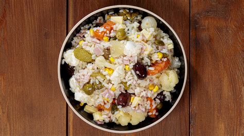 - Insalata di riso greca: L'insalata greca si trasforma in insalata di riso, per un piatto più completo e sostanzioso: il riso viene condito con pomodori a cubetti, cipolla cruda, olive nere, feta, cetriolo e origano.