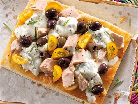 Focaccia con Gorgonzola DOP, Olive Taggiasche, Rosmarino e Tonno