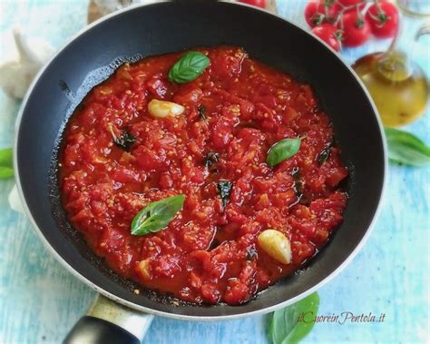 Una volta fatto questo occorre insaporire la passata con un trito di verdure, o degli spicchi d'aglio, e proseguire la cottura sino ad ottenere la giusta densità! Quando il sugo di pomodoro fresco sarà pronto potrete utilizzarlo per condire tantissimi formati di pasta, come i classici spaghetti al pomodoro, ma anche per un buon risotto al pomodoro!