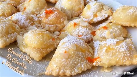 L'impasto è fatto in casa con farina e strutto, lavorato e modellato per preparare questi ravioli farciti con ricotta, preferibilmente di capra. Il profumo della scorza di limone e arancia rende il ripieno dolce e delicato. La frittura in olio di semi regala ravioli fragranti e leggeri.