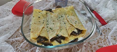 - Preparate la farcitura con ricotta e funghi e amalgamate bene, aggiungete una grattugiata di pepe a mulinello e farciteci le crêpes.