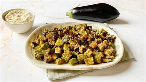 Un’altra idea è quella di utilizzare la friggitrice ad aria, cuocendo prima le patate a cubetti con un filo di olio e un pizzico di sale e poi le melanzane, sempre tagliate a cubetti.