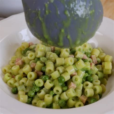 La prima particolarità della nostra pasta piselli e prosciutto cremosa è che per prepararla non abbiamo usato latticini. Spesso, per ottenere una crema in questa ricetta, si utilizzano panna, robiola o altri formaggi cremosi. Invece, noi abbiamo usato solo prosciutto a cubetti e piselli, mantenendone una parte interi e frullando l'altra per creare una deliziosa cremina.