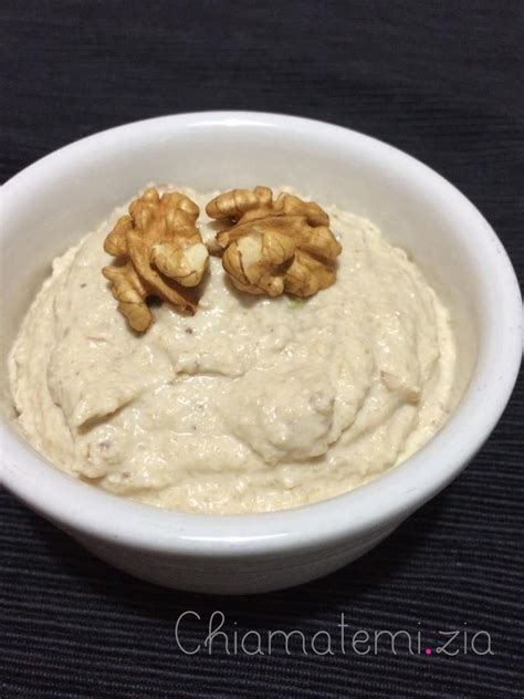 Questa gustosa salsa vegetariana si prepara con il frullatore o con il mortaio in marmo, lo stesso con cui si prepara il pesto: la consistenza deve essere cremosa.