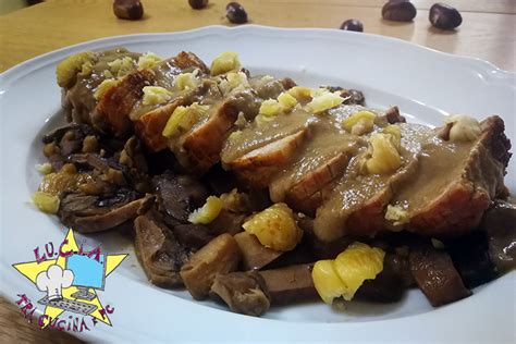 Infine, se amate abbinamenti più tradizionali, la ricetta che fa per voi è l’ARROSTO DI MAIALE CON FUNGHI E CASTAGNE.