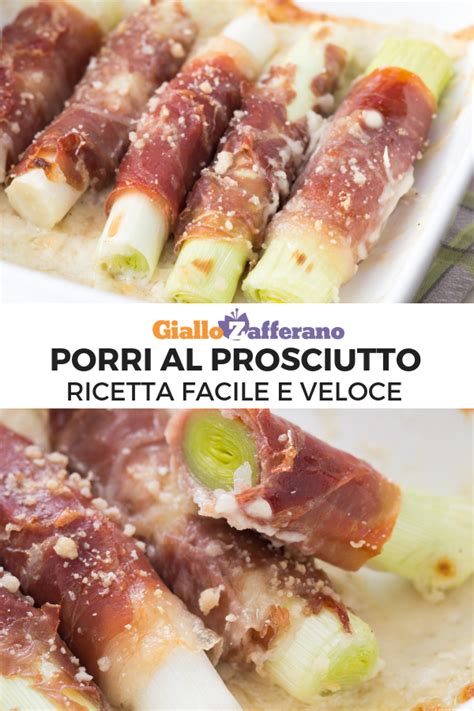 I porri al prosciutto sono un antipasto semplice e gustoso, ma possono essere serviti anche come piatto unico. I porri vengono avvolti dalle fette di prosciutto, adagiati su una besciamella al pecorino, spolverizzati con pecorino e cotti al forno.
