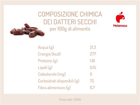 | Nutriente | Datteri (100g) | Zucchero Bianco (100g) |