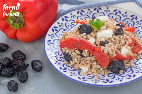 Ecco una ricetta semplice e gustosa per preparare un'insalata di farro fredda con peperoni e olive: