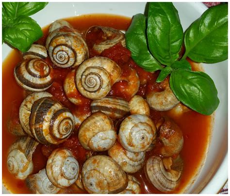 - Marche: Lumache cotte con vino, carota, aglio, scalogno e prezzemolo.
