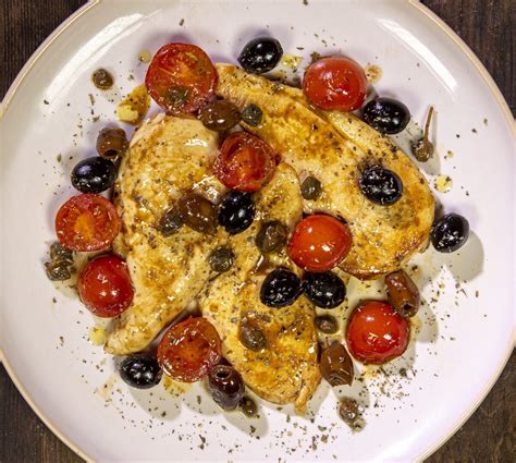 Il pollo alla mediterranea è un secondo piatto facile e gustosissimo, preparato con petto di pollo cotto in padella con olio, aglio, rosmarino e vino bianco, poi insaporito con olive nere e bianche, capperi e pomodorini secchi, perfetto per un pranzo in famiglia o una cena con gli amici.