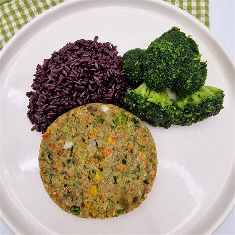 Un'alternativa vegetariana e vegana per gustare un hamburger di riso ricco di sapori e colori.