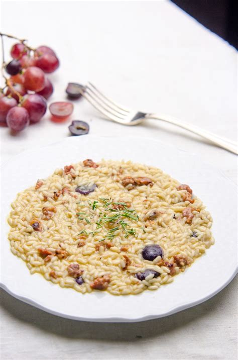 Sapori all’apparenza contrastanti sono, invece, perfetti in questo risotto con salsiccia e uva, un primo piatto un po’ insolito ma davvero delizioso.