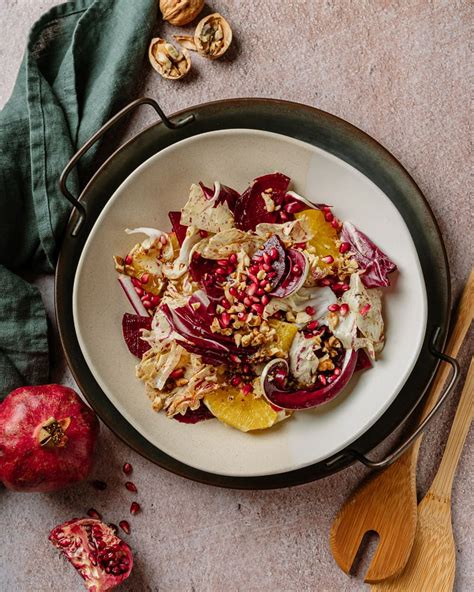L’insalata di radicchio con mela e melograno è un'insalata molto semplice da realizzare, il classico piatto che rende molto con il minimo sforzo. La sua forza sta nella scelta degli ingredienti, che è abbastanza insolita. È realizzata, infatti, sia con la frutta, rappresentata dal melograno e dalla mela, sia con le verdure, rappresentate invece dal radicchio.