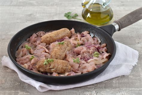 Preparazione Salsiccia al Vino Bianco e Cipolle in Padella