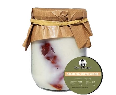 La pratica di conservare la carne nel grasso, o "sugna", risale a tempi antichi, quando la refrigerazione non era disponibile. La sugna, ricavata dal grasso del maiale, in particolare dalla pleura (il panno attaccato alle costole) e dallo strutto (derivato dalla fusione del lardo dorsale), creava una barriera protettiva contro l'aria e i batteri, preservando la freschezza e il sapore della salsiccia. Questo metodo ingegnoso permetteva alle famiglie contadine di conservare la carne per lunghi periodi, garantendo una riserva alimentare durante i mesi invernali o in periodi di scarsità.