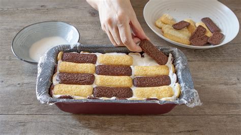 - Si può preparare ad esempio una crema di mascarpone al caffè e utilizzare biscotti al cioccolato.