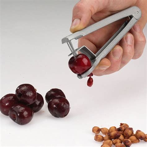 - Con il denocciolatore: Si tratta di una specie di vaschetta con impugnatura che contiene il frutto, con un foro per espellere il nocciolo.