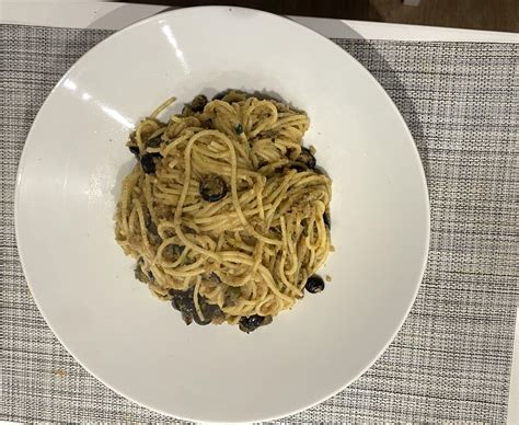 Nella mia versione ho infatti utilizzato degli spaghetti aggiungendo però al condimento capperi e acciughe per rendere questa ricetta dal sapore più particolare. La preparazione chiaramente è molto semplice e veloce, tant’è che mio marito la chiama sempre “pasta dell’ultimo minuto”. E’ pratica e subito pronta e quindi perfetta per quando si torna casa tardi la sera o si ha gente a cena e non si ha tempo per cucinare. Con questa ricetta farete sicuramente un figurone.