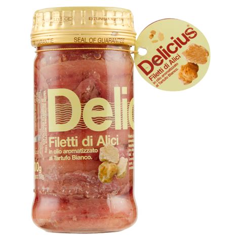 IL PRODOTTO DELICIUS: Filetti di Alici in Olio di Oliva 46g. Apri la scatola di Alici Delicius in olio di oliva e riscopri la bontà genuina della tradizione. Pesce azzurro di ottima qualità, abilmente salato e perfettamente maturato per mesi e mesi. Tutta l’esperienza e la sapiente pratica di intere generazioni tradotta in un cibo così semplice e così gustoso. Un prodotto di altissima qualità, un delizioso piacere.