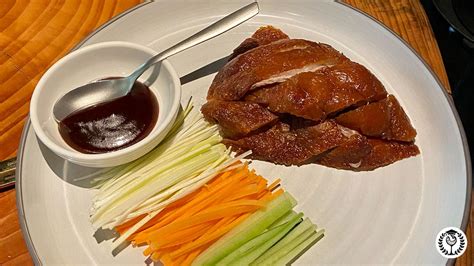 L’anatra infatti viene tagliata alla presenza dei commensali in fette sottili e ogni pezzo di carne è affiancato da uno di pelle croccante; il piatto si completa con delle frittelle di farina di grano o con panini al loto cotti al vapore, salsa hoisin (a base di soia, finocchio, peperoncino e aglio) e contorno di cetrioli e cipollotti tagliati sottilmente per dare freschezza.