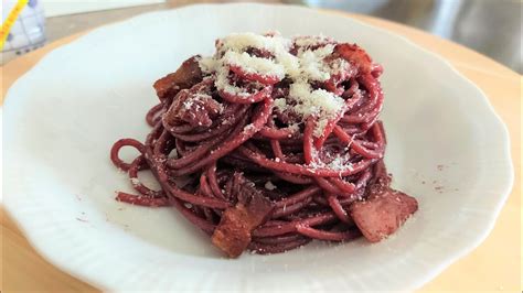 Per una versione più raffinata, si può lasciare appassire il porro a rondelle con una noce di burro fuso, aggiungere poi in pentola il vino rosso, una puntina di zucchero semolato, una grattugiata di noce moscata e un pizzico di sale e di pepe, e frullare quindi bene il tutto, dopo un paio di minuti di cottura, con l'ausilio di un mixer a immersione. A questo punto si versa nuovamente il liquido denso e aromatico ottenuto nella padella insieme agli spaghetti, lessati al dente in acqua bollente leggermente salata, e si manteca infine la pasta, per un tocco sapido e goloso, con una manciata di pecorino grattugiato: il risultato sarà un piatto cremoso e profumato, ideale da preparare anche all'ultimo momento per una serata con ospiti inattesi.